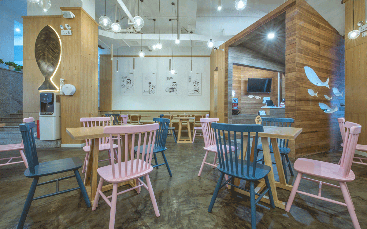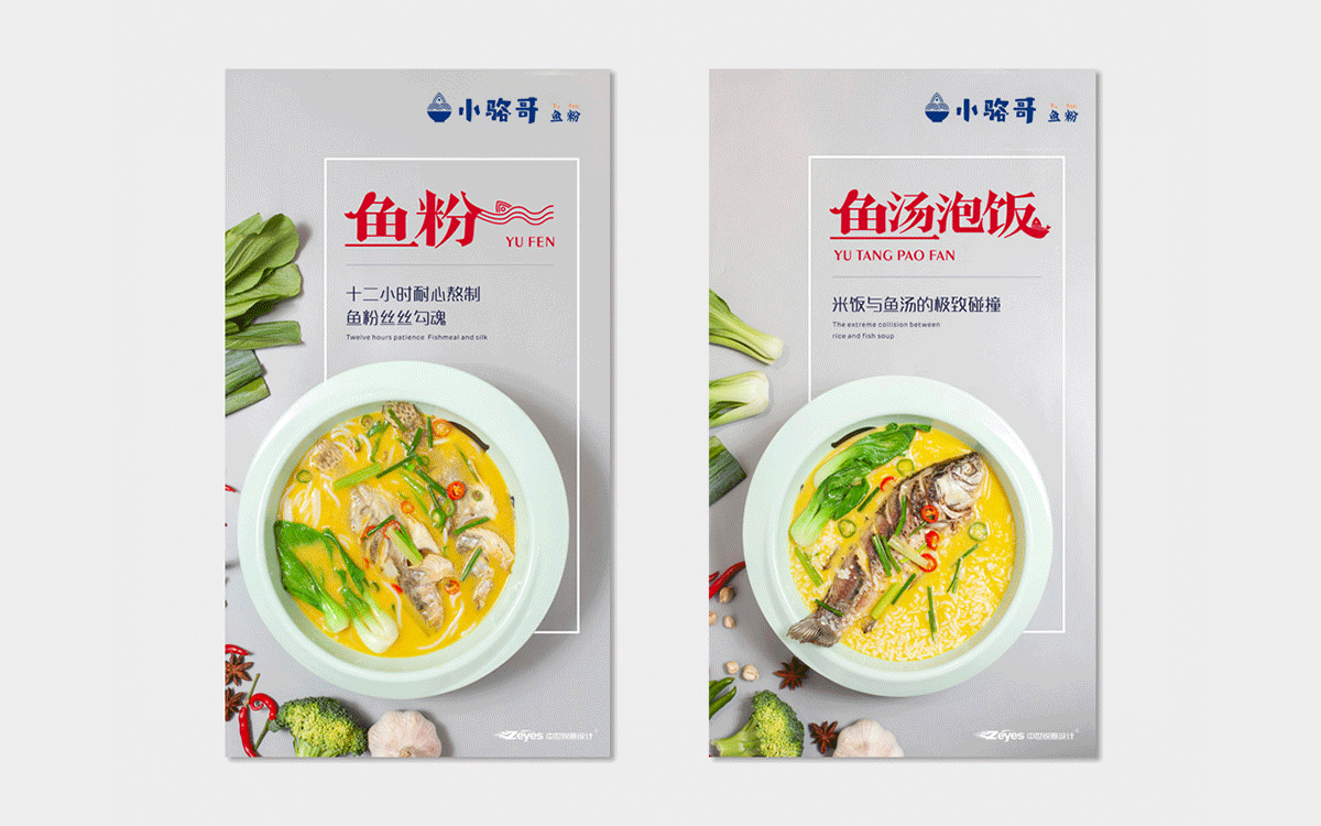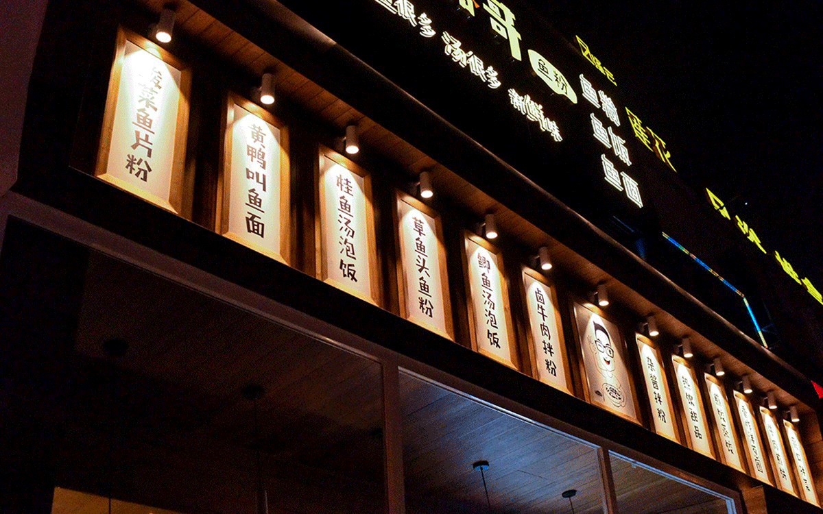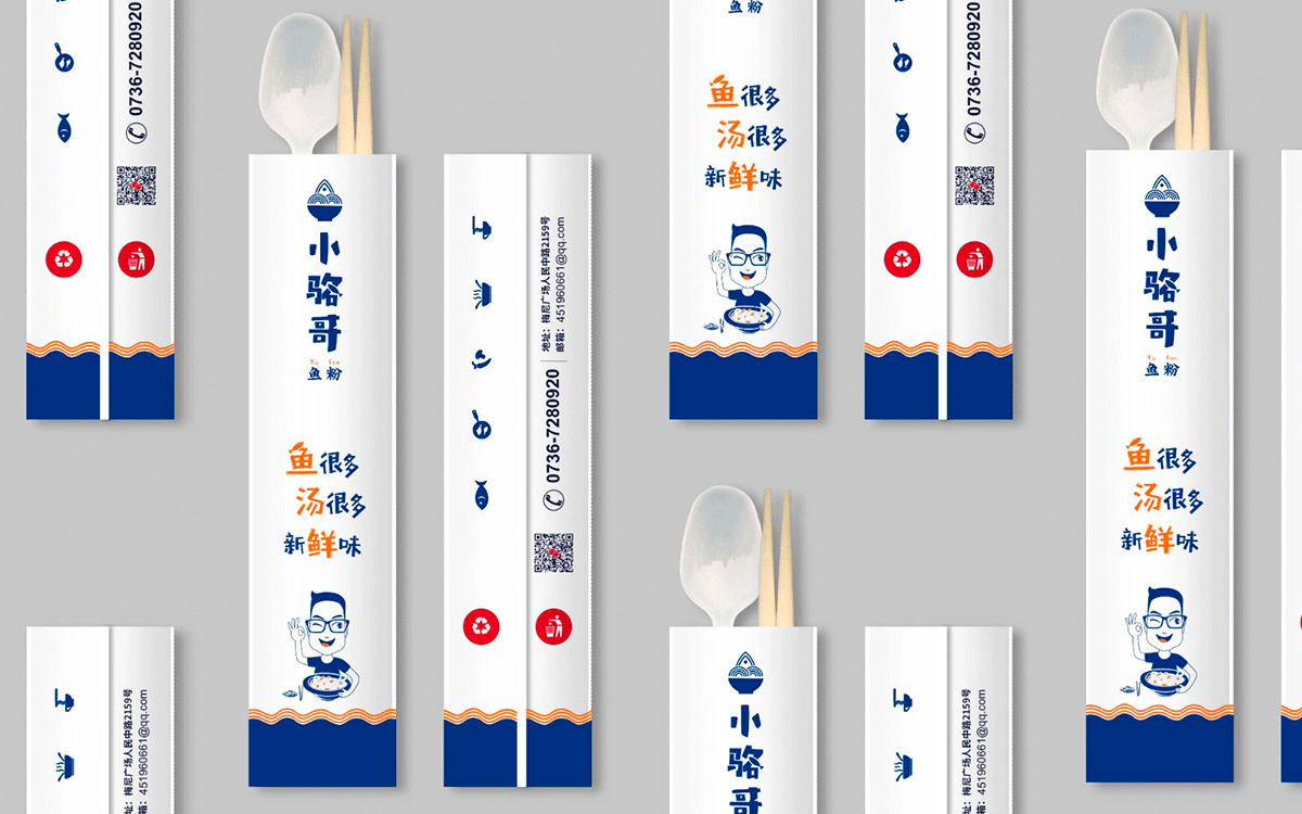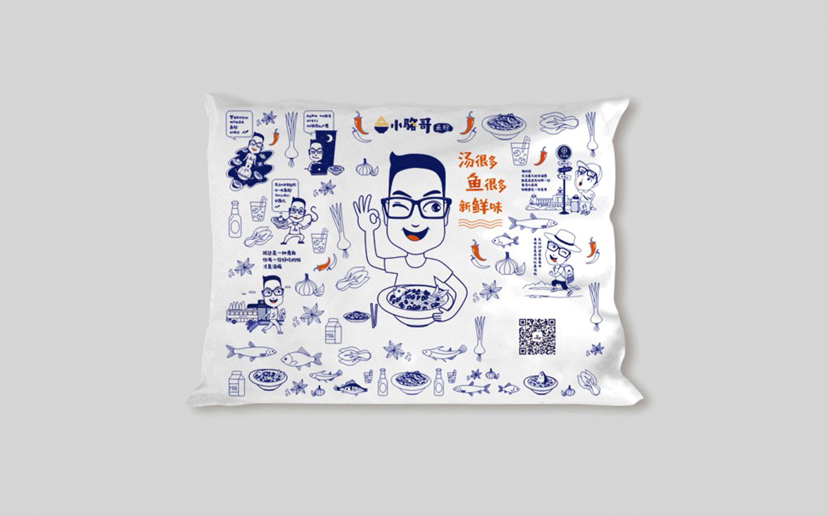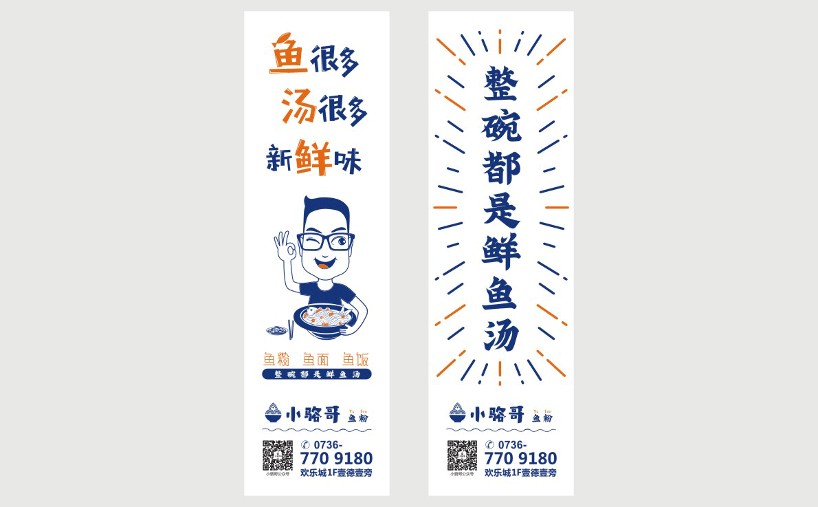 這是2018年中世銳意設(shè)計(jì)接受委托的一個小型輕食餐飲項(xiàng)目,委托人已經(jīng)在當(dāng)?shù)爻晒\(yùn)營了另一個知名度頗高的簡餐品牌——“挑香小面”,這一次重新建立全新品牌,是想拓展餐飲管理公司的產(chǎn)品范圍,并建立更加時尚的輕食品牌。小駱哥魚粉從命名開始,就自帶了濃濃的人情味,用小駱哥本人的昵稱作為品牌名,也展現(xiàn)了委托人對自己產(chǎn)品的自信。人情味與自信結(jié)合、美味與趣味融合,是我們對這個品牌最基本的創(chuàng)作思路。中世銳意設(shè)計(jì)以小駱哥本人為基本原型創(chuàng)作了系列卡通人物插畫;我們創(chuàng)作了系列關(guān)注年輕人學(xué)習(xí)、生活中內(nèi)心波瀾的小段子;我們在空間設(shè)計(jì)中嵌入魚元素的造型,讓小魚空間中游弋,使其成為品牌的超級符號;我們用原生態(tài)實(shí)木設(shè)計(jì)的戶外招牌,展現(xiàn)了濃濃的人情味; 獲得第13屆“創(chuàng)意中國”設(shè)計(jì)大獎賽全國金獎。