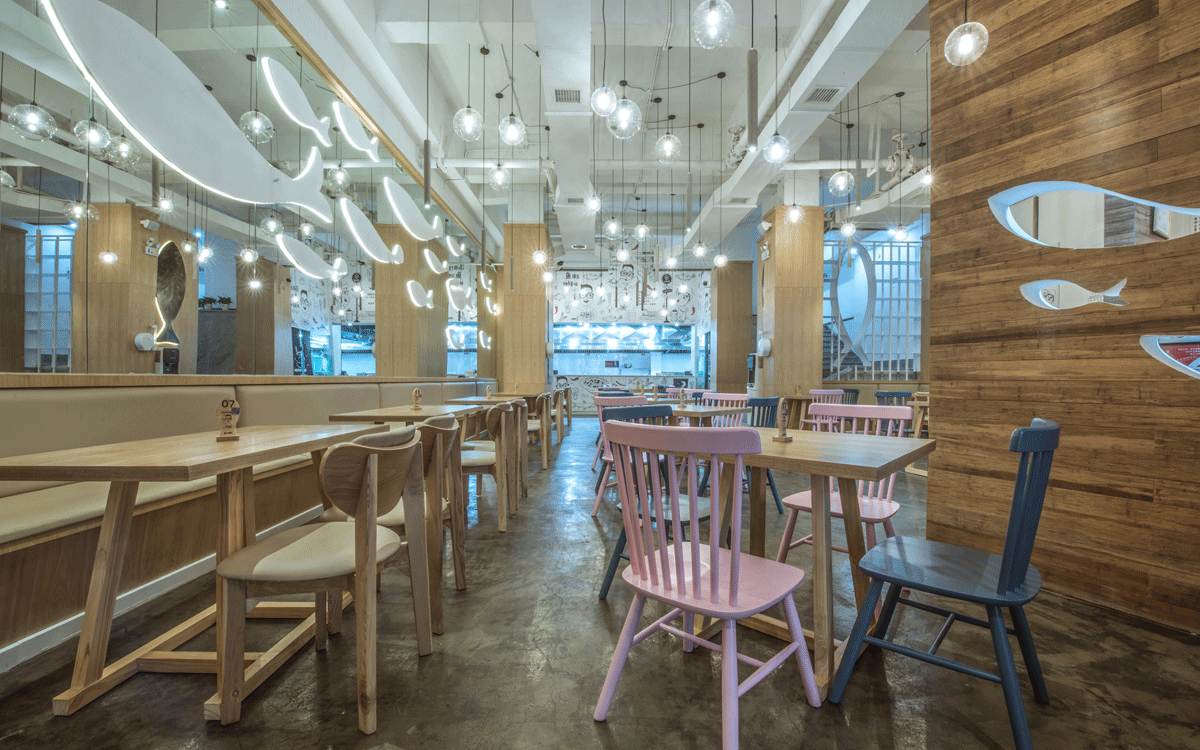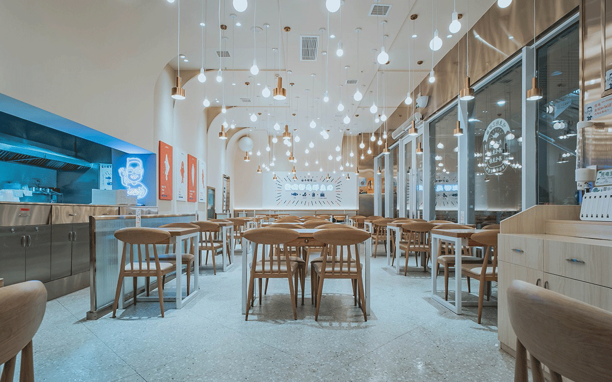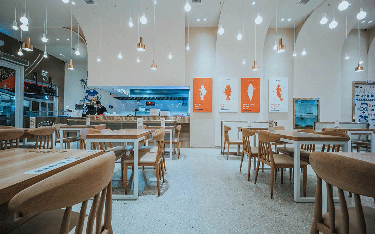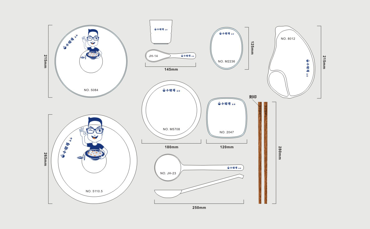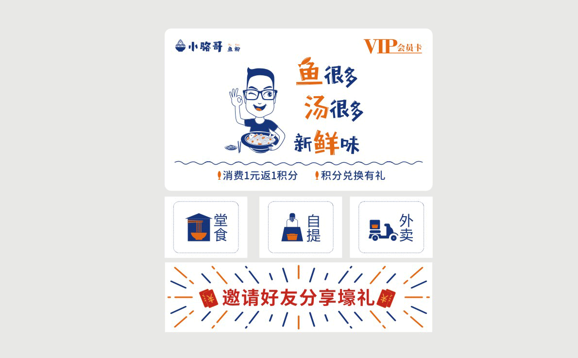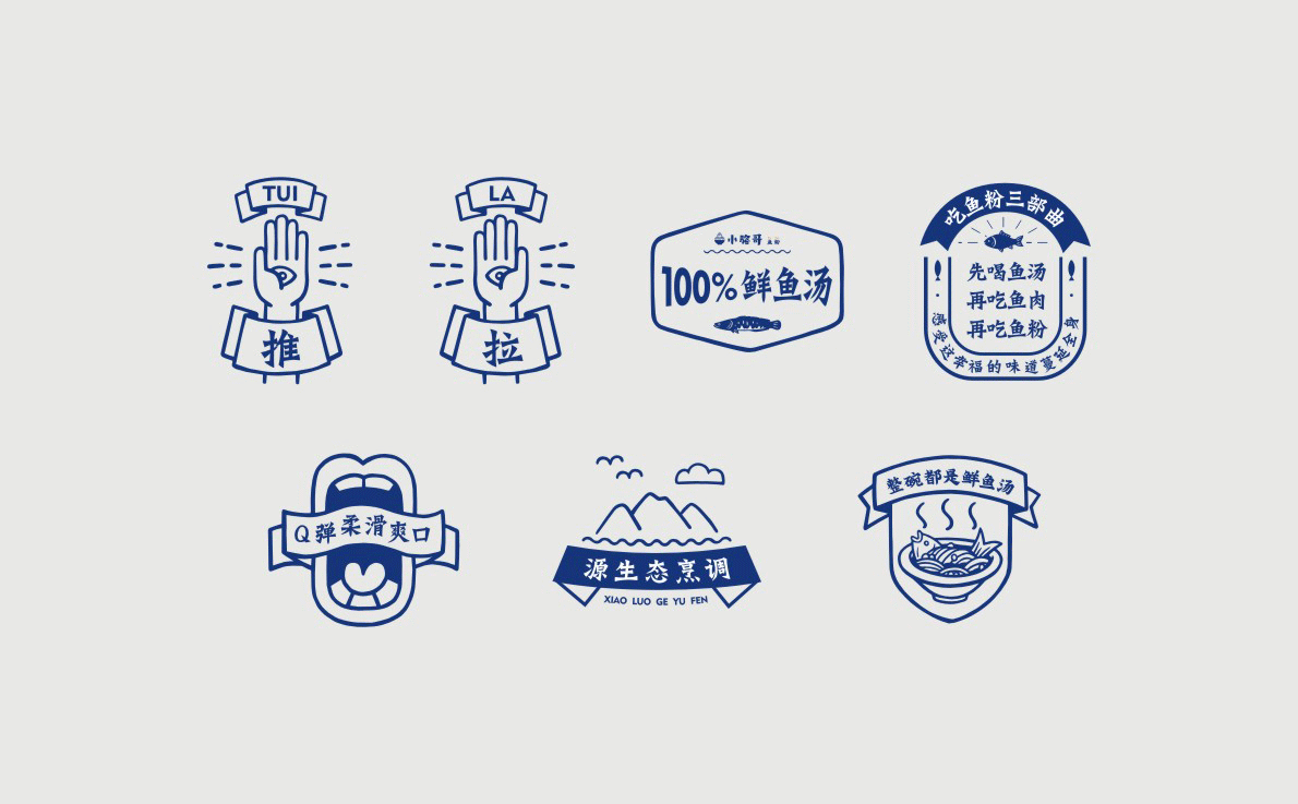 這是2018年中世銳意設(shè)計(jì)接受委托的一個小型輕食餐飲項(xiàng)目,委托人已經(jīng)在當(dāng)?shù)爻晒\(yùn)營了另一個知名度頗高的簡餐品牌——“挑香小面”,這一次重新建立全新品牌,是想拓展餐飲管理公司的產(chǎn)品范圍,并建立更加時尚的輕食品牌。小駱哥魚粉從命名開始,就自帶了濃濃的人情味,用小駱哥本人的昵稱作為品牌名,也展現(xiàn)了委托人對自己產(chǎn)品的自信。人情味與自信結(jié)合、美味與趣味融合,是我們對這個品牌最基本的創(chuàng)作思路。中世銳意設(shè)計(jì)以小駱哥本人為基本原型創(chuàng)作了系列卡通人物插畫;我們創(chuàng)作了系列關(guān)注年輕人學(xué)習(xí)、生活中內(nèi)心波瀾的小段子;我們在空間設(shè)計(jì)中嵌入魚元素的造型,讓小魚空間中游弋,使其成為品牌的超級符號;我們用原生態(tài)實(shí)木設(shè)計(jì)的戶外招牌,展現(xiàn)了濃濃的人情味; 獲得第13屆“創(chuàng)意中國”設(shè)計(jì)大獎賽全國金獎。