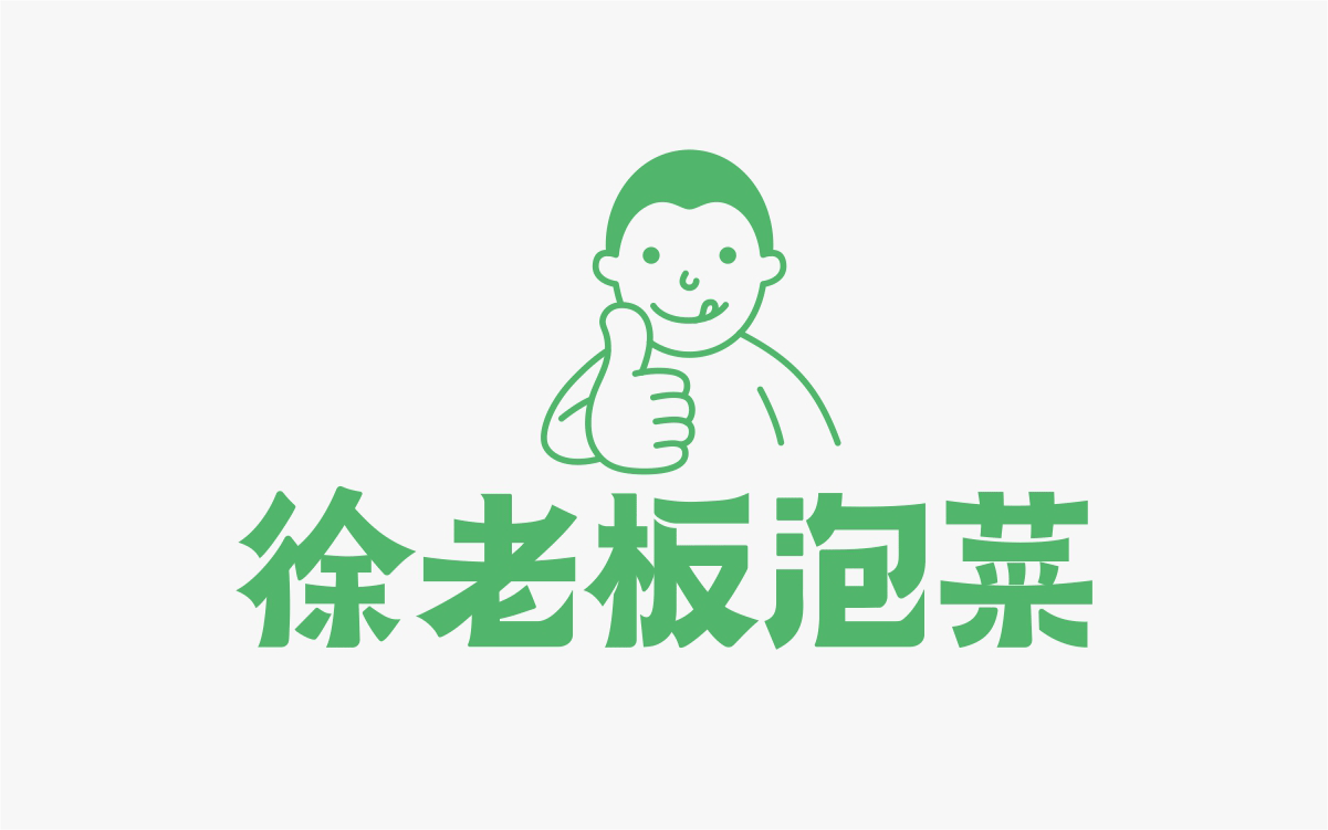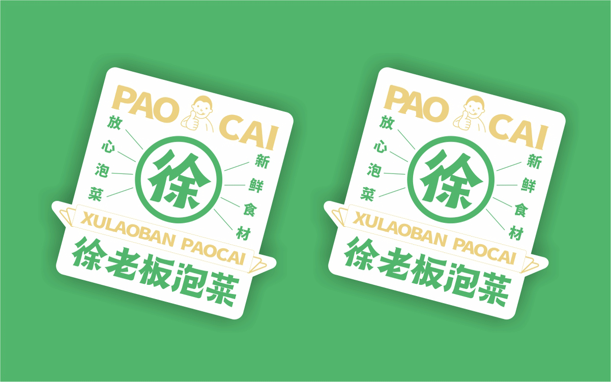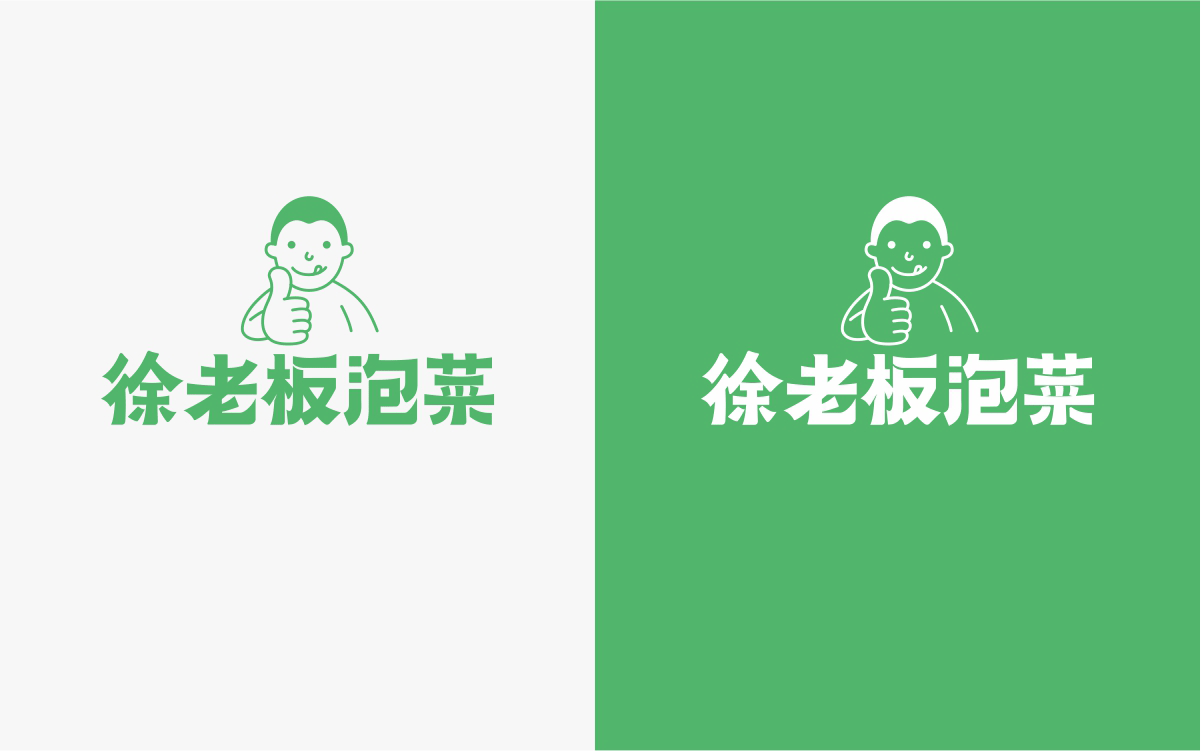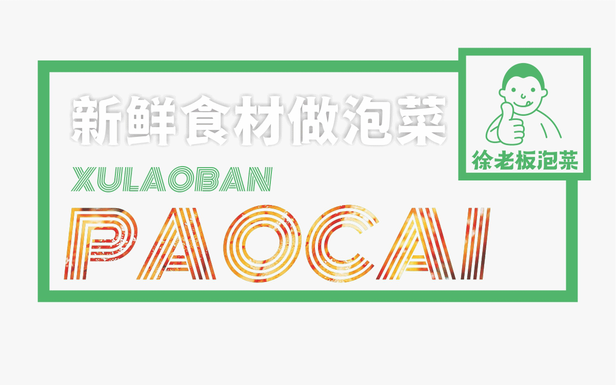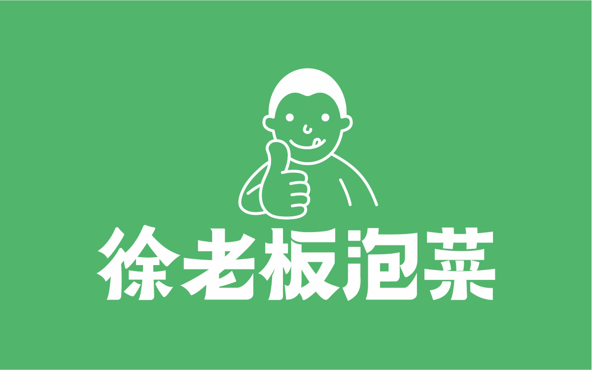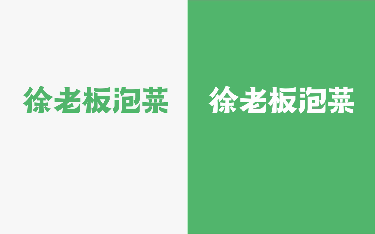 由于徐老板泡菜原有品牌色為綠色,且積累一定人氣和客群,所以在品牌升級(jí)路徑中,我們需要保留品牌綠色的基因,但做色差調(diào)整,配合橙黃色,營(yíng)造出泡菜的酸爽感。