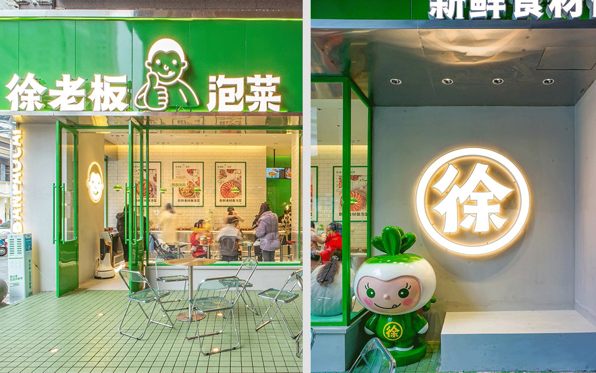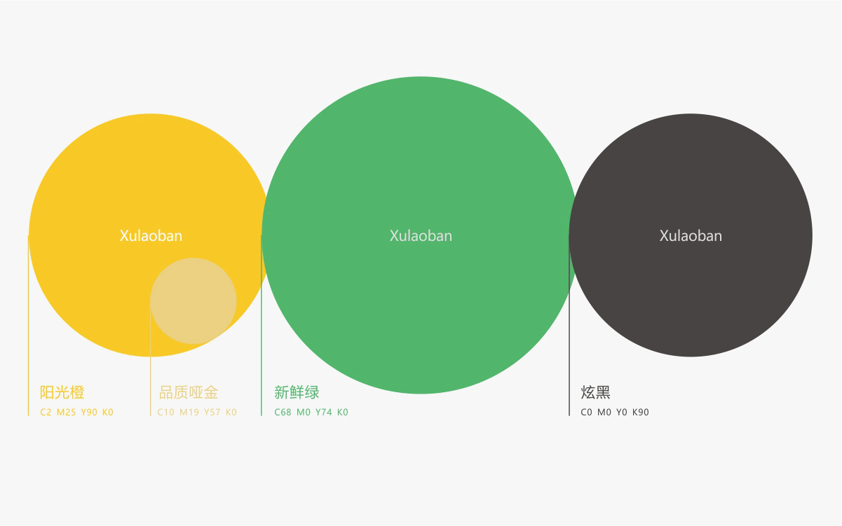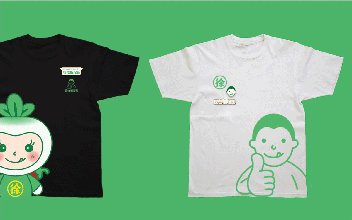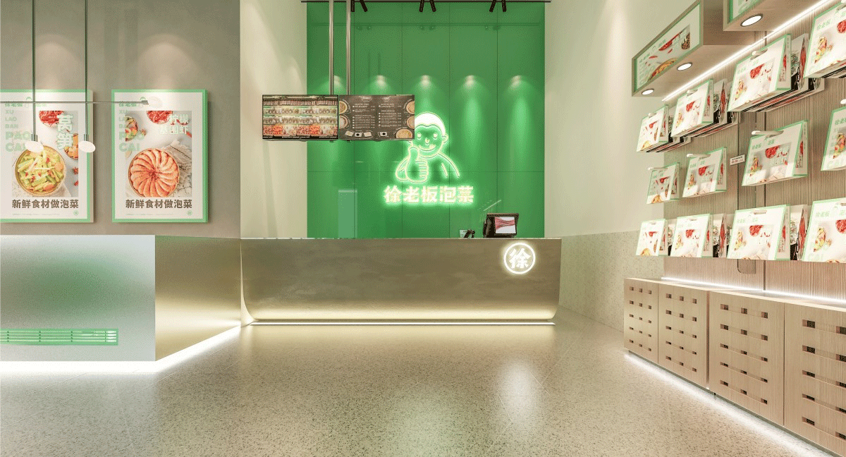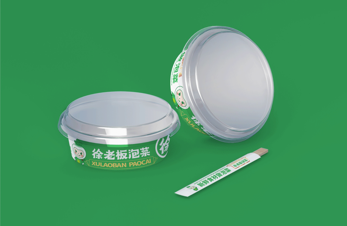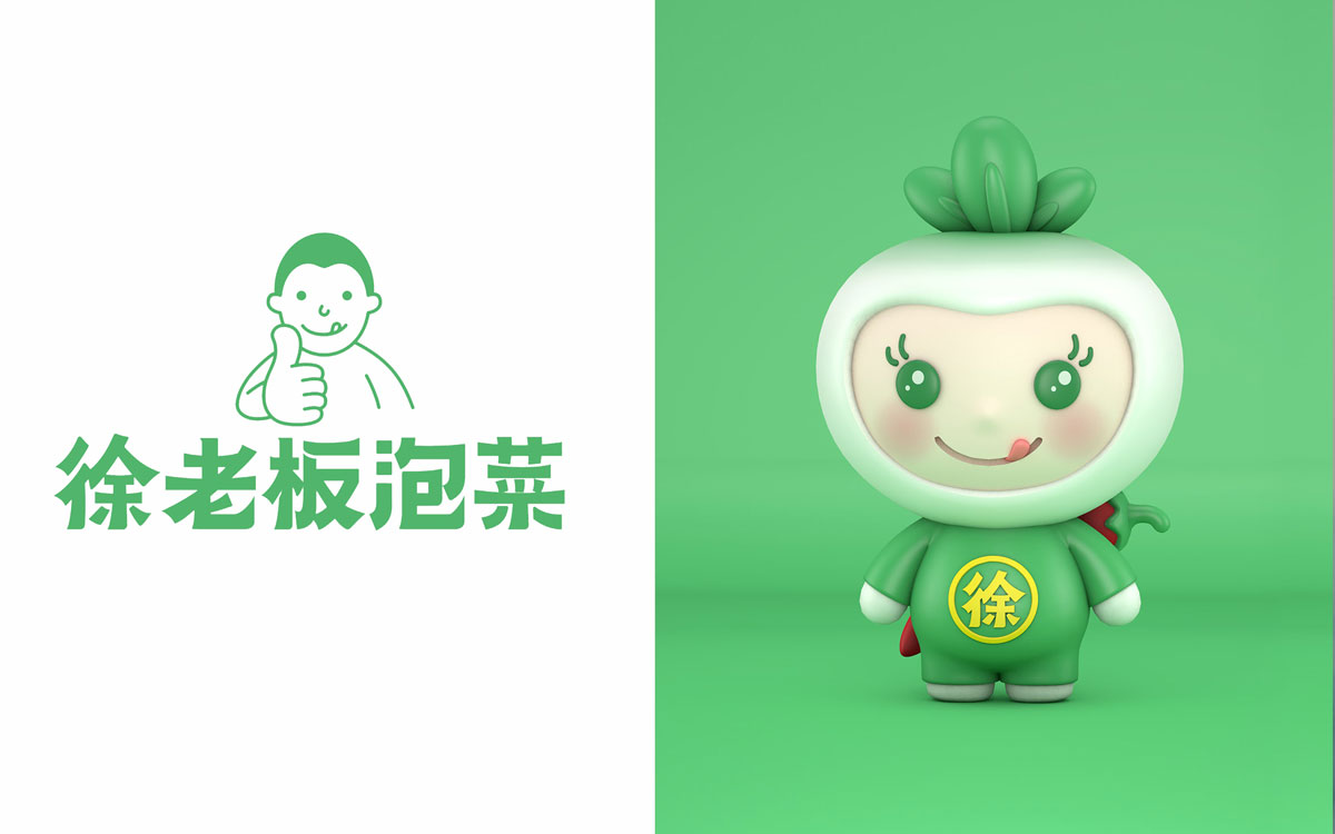由于徐老板泡菜原有品牌色為綠色,且積累一定人氣和客群,所以在品牌升級(jí)路徑中,我們需要保留品牌綠色的基因,但做色差調(diào)整,配合橙黃色,營(yíng)造出泡菜的酸爽感。