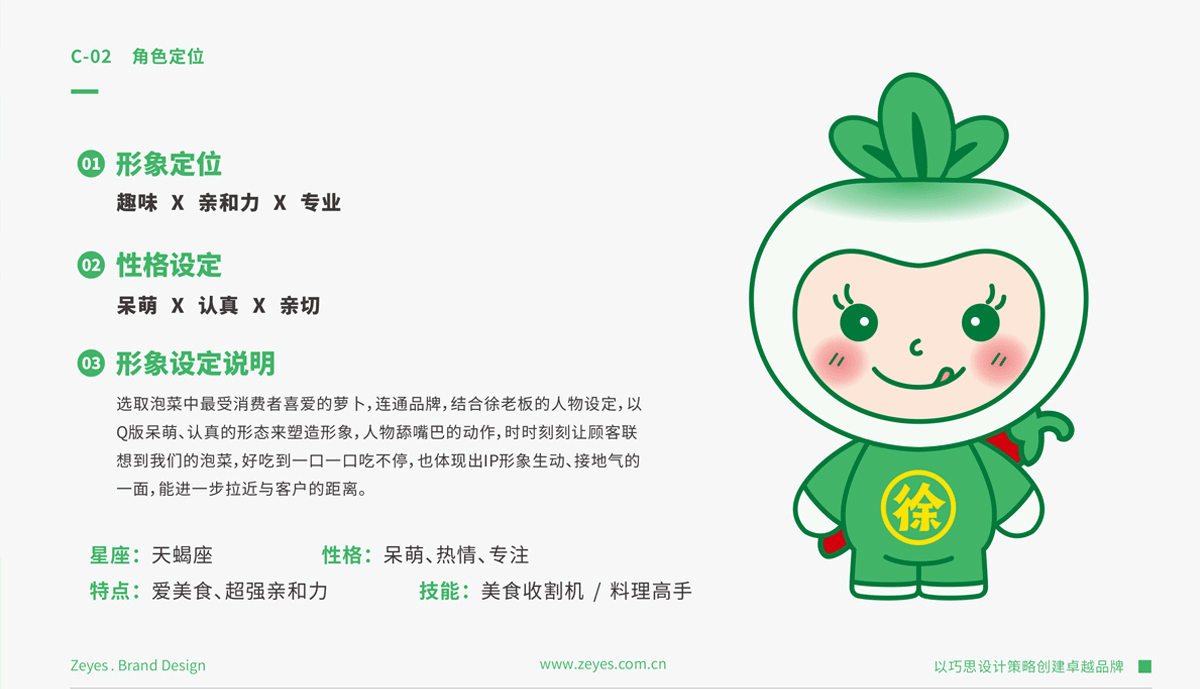 泡菜里的蔬菜、檸檬,是連通品牌和消費(fèi)者的心智符號(hào),鎖定年輕消費(fèi)群體的時(shí)尚、趣味、呆萌線索,結(jié)合徐老板的人物設(shè)定,就是營(yíng)造品牌的獨(dú)特IP形象。